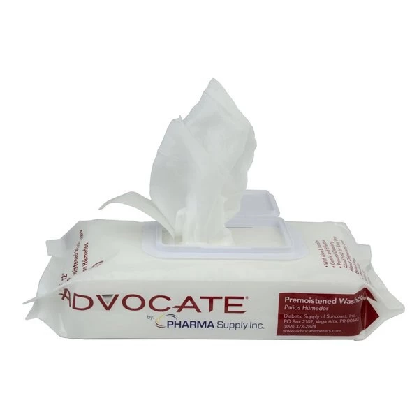 The Advocate extra large 8" x 12" washcloths are soft, yet very strong. Mildly scented, they feature a non-irritating combination of aloe and lanolin for a gentle, effective cleaning. Quad folded for easy one-handed usage. A complete and convenient personal cleaning solution anywhere you go. Use it to clean your pet's feet.