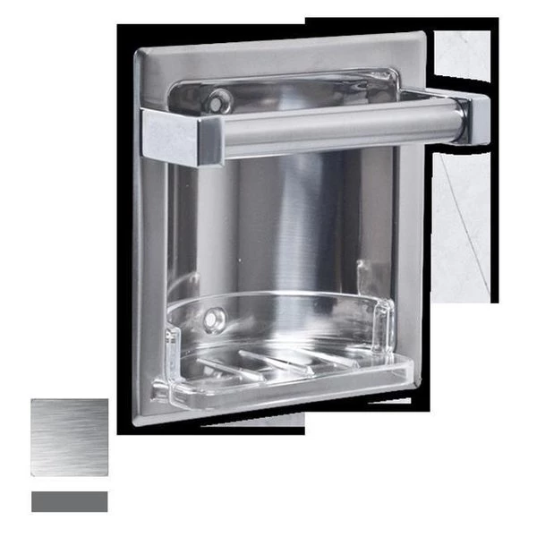 FeaturesFabricated of #22 gauge stainless steelSatin soap dishRecessed