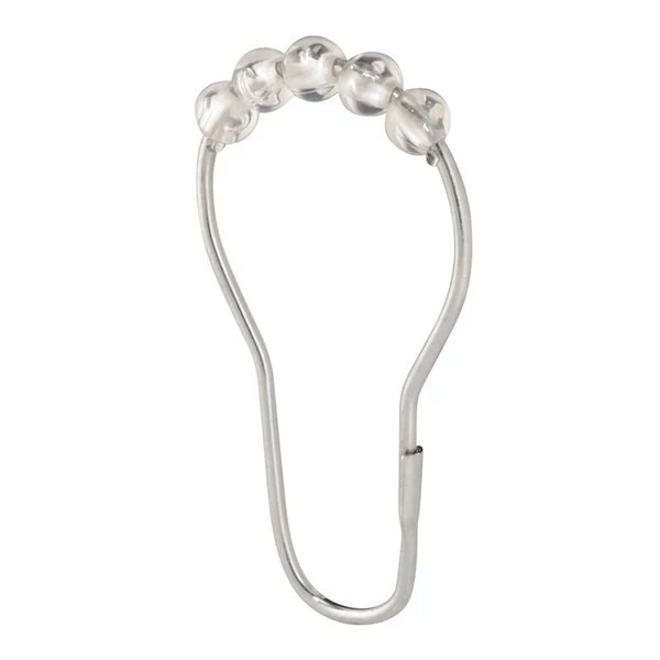 This set of twelve roller rings is designed with five round metal beads on each ring to effortlessly glide over the rod while getting into and out of the shower. The closed pinch-clasp design securely holds both the shower curtain and liner in place and prevents the curtain from falling off like with C- and S-hooks. Simply unclasp the hooks attach to the shower curtain and liner and hang over the shower rod for easy set up.