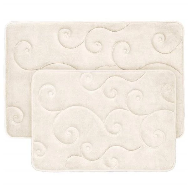 Bedford Home 67A-36765 2 Piece Memory Foam Bath Mat Set by Coral Fleece Embossed Pattern – Ivory