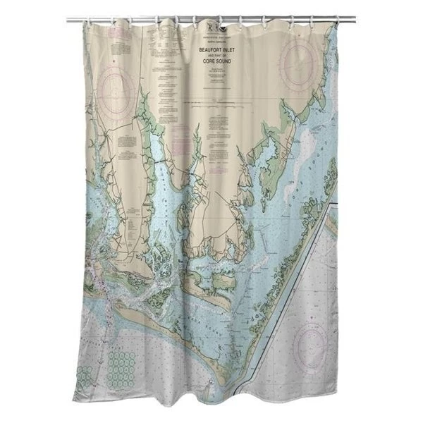 Betsy Drake SH11545 Beaufort Inlet & Part of Core Sound; NC Nautical Map Shower Curtain - 70 x 72 in.