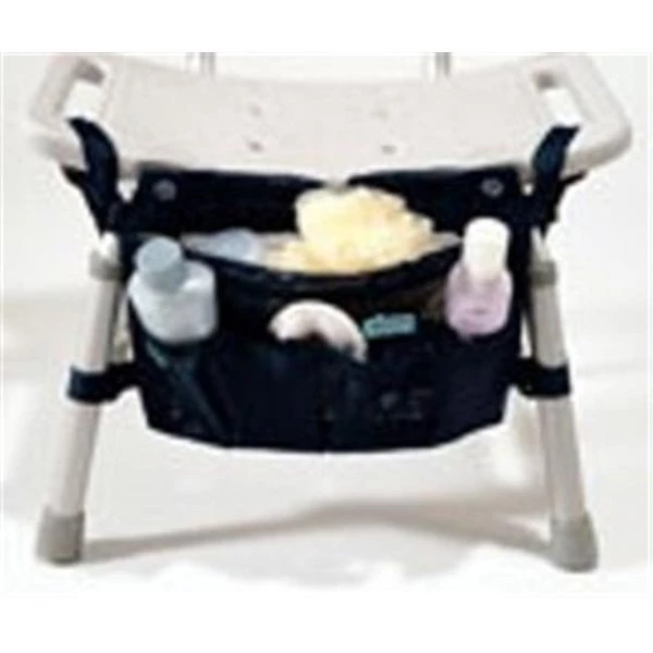 Keeps bathing supplies within reach Unique design features interchangeable suction cups and nylon straps to allow attachment to the wall or bathing chair Spacious storage pockets Vinyl mesh allows water to drain Dimensions 10in x 13.5in x 1in Picture may be shown with optional accessories