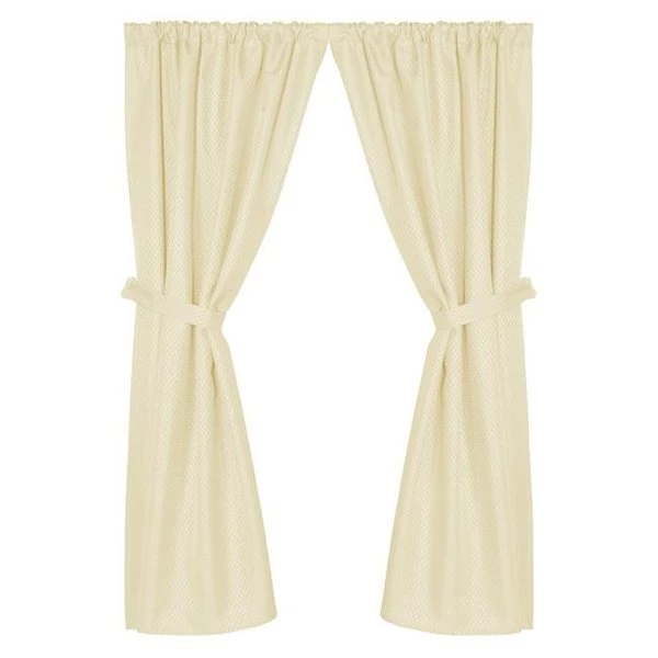 An elegant addition to any bath decor. "Grace" jacquard bathroom window curtain brings sophistication and style home! Constructed of heavy weight jacquard material that is easy care and machine washable. FeaturesGrace Jacquard Bathroom Window CurtainComes complete with two panels and two tie backsSpecificationsColor: IvorySize: 36 x 54 in.Material: 100% PolyesterWeight: 2 lbs