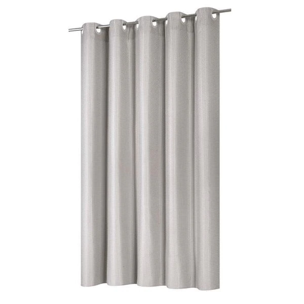 EZ-ON Waffle Weave Fabric Shower Curtain with Built Snap Off-Liner EZ-ON waffle weave fabric shower curtain with snap out fabric liner and built in hooks adds style and functionality to the modern bathroom. Using patented Hookless technology. this curtain eliminates the need for separate shower curtain liners and hooks. Made from heavy weight 100% polyester. the curtain is machine washable and water repellent. Comes complete with built in Flex On hooks and replaceable fabric liner. FeaturesWater Repellent Fabric Liner IncludedNo shower hooks requiredSpecificationsColor: TaupeSize: 70 x 75 in.Weight: 4 lbs