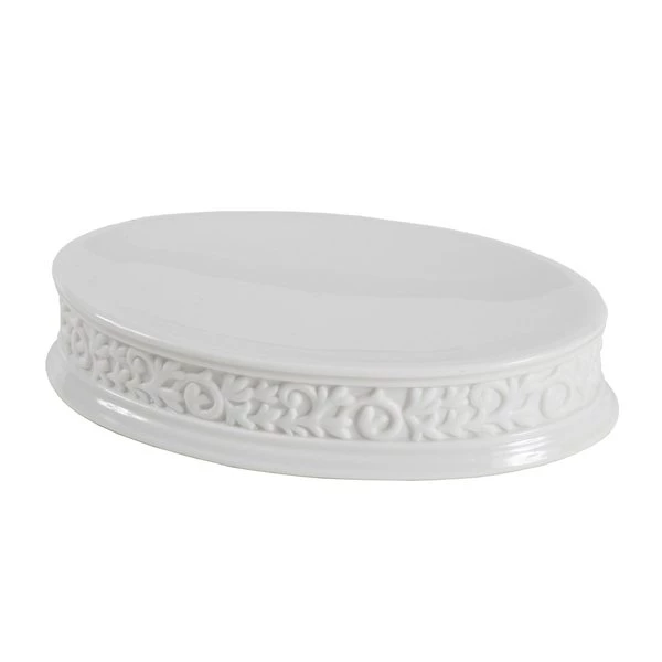 Our sophisticated 5-Star Hotel quality coordinated accessories include relief scroll stoneware accessories. Easy care, wipe clean with soft damp cloth. Coordinates with other Cosmoplitan accessories sold else where on this site. 6.25 x 4.25 x 1.25"H