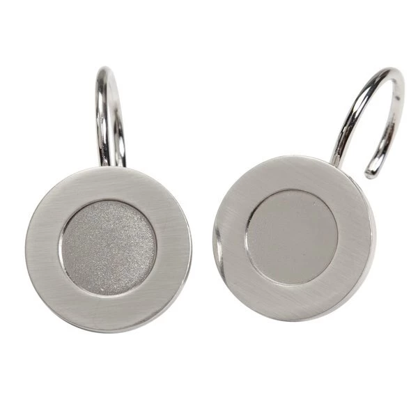 Stylized nickel color shower curtain hooks. Set of 12. Wipe clean with a soft damp cloth.
