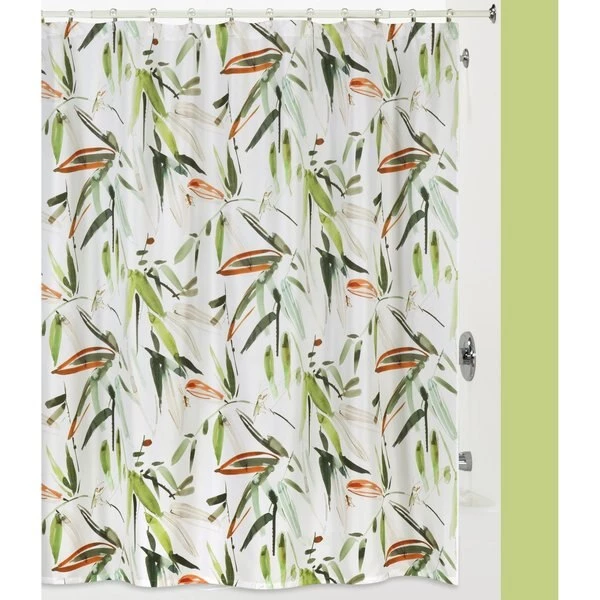 Our verdant multi-colored tropical shower curtain is printed on a 100% polyester fabric panel. Coordinates to other Fiji accessories and rug to complete our exotic tropical getaway. Machine wash, tumble dry. Shower curtain liner recommended. 72" x 72"