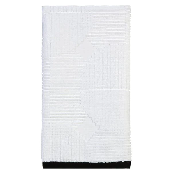 Simplicity rules in our modern geometic 100% cotton jacquard towels with similar contrasting accent hems. Coordinates to other Metro Circles ceramic accessories, shower curtain and rug sold else where on this site echo a crisp and clean contemporary graphic collection for the bath. Machine wsh, tumble dry. 16"x28"