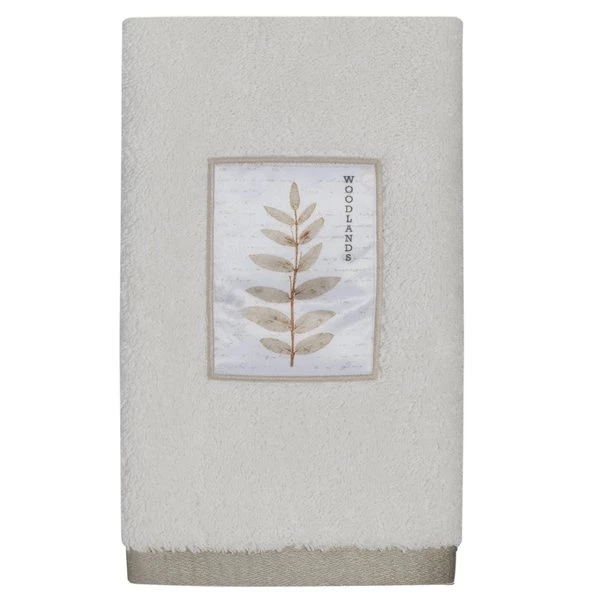 100% cotton with satin printed motif appliqued towels with contrasting end hems. Coordinates to other Pressed Leaves accessories, shower curtain, rug and towels sold else where on this site to create a chic new classic. Machine wash, tumble dry. 12"x18"