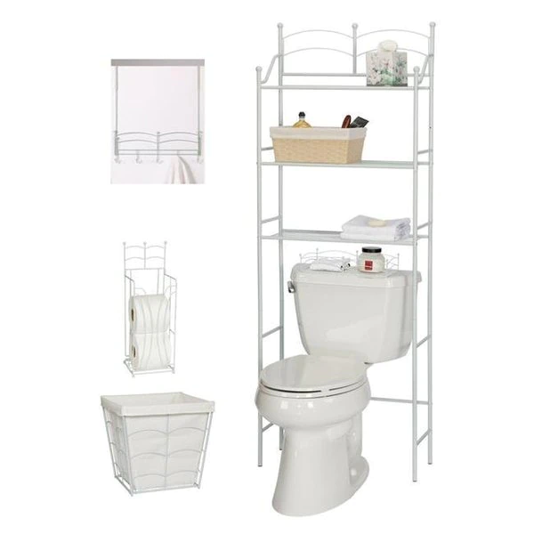 Style your home with furniture that exemplifies your exquisite taste. Choose from an amazing array of relaxing and luxurious beds, sofas, tables and more to the get a perfect piece of fixture for every space in your home or office. FeaturesDisplay organize and store in style Decorative transitional design in all steel construction with durable powder coat finish with soft clothDisplay organize and store in styleDecorative transitional styleWipe clean with soft damp clothWastebasket has removable washable liner in polyester;cotton5 Piece SpecificationsColor: WhiteSpace Saver: 24" x 9.625" x 66.5"Over The Door Hooks: 14.75" x 5.5" x 16"Toilet Tissue Reserve: 6" x 6" x 17"Weight: 13 lbs