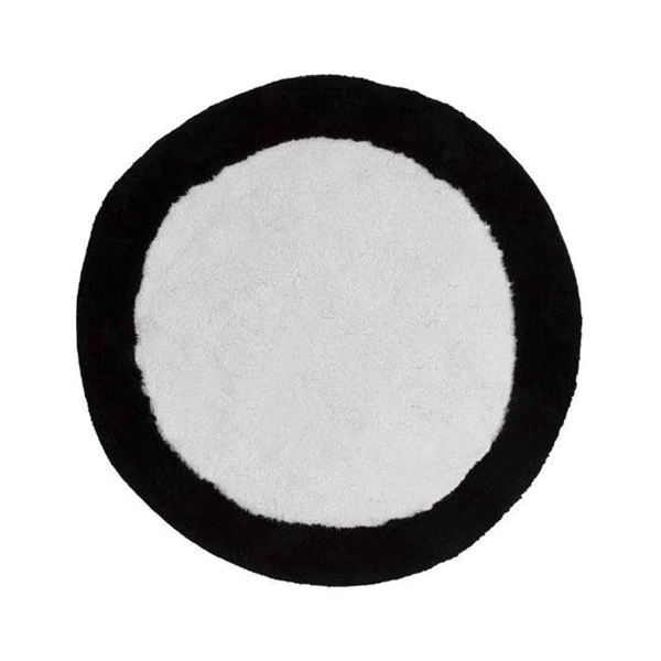 Metro Circles 100% Cotton hand crafted rectangular bi-color rug.Simplicity rules in our Modern Circles bath program. Metro Circles rug has a black accenting band. A modern look for the home. FeaturesMetro circles bath accessories coordinate with the Metro Circles shower curtain. rug. towelsSoft and chushy for your feetMachine WashSpecificationsWidth: 63 cmDepth: 63 cmMaterial: CottonColor: White. BlackShape: RoundTexture: MatteWeight: 2 lbs