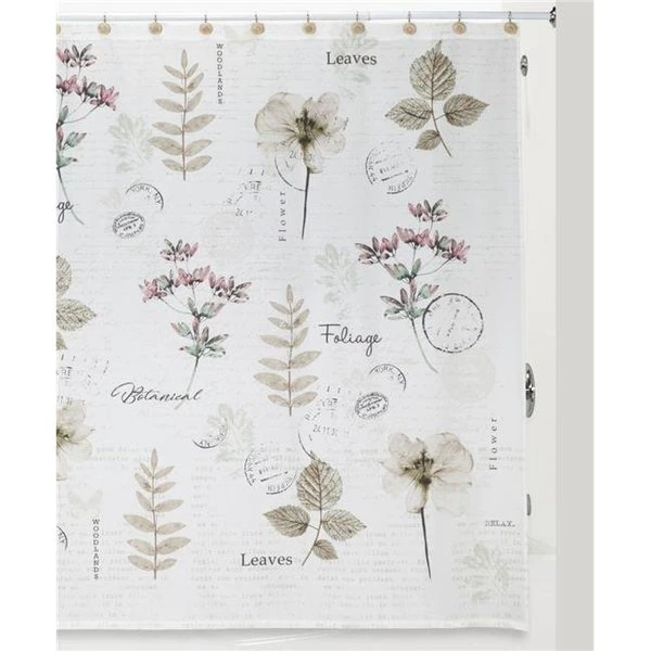 A sophisticated botanical composition in natural tones is printed on a 100 textured linen weave polyester shower curtain panel displayed there is our entire product line up of housewares Decor and storage products. SpecificationsLength: 72 in.Height: 0.25 in.Width: 72 in.Color: NaturalMaterial: PolyesterWeight: 1.8 lbs