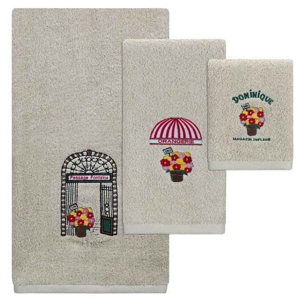 Chic Parisian street scene, capturing the charm of this beautiful city, our parisian street scene is embroidered towels each with a different scene. Coordinates to other Rue Di Rivoli towels, accessories, rug and shower curtain sold else where on this site. Machine wash, tumble dry. 25"x50"