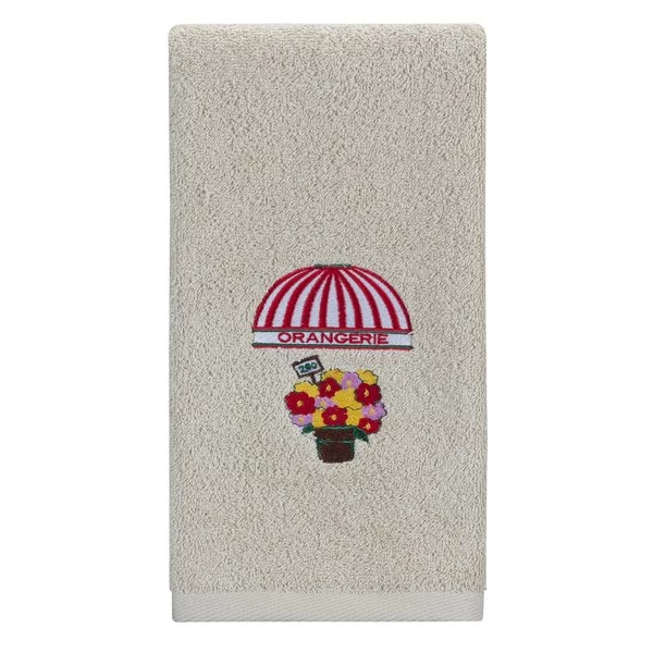 Chic Parisian street scene, capturing the charm of this beautiful city, our parisian street scene is embroidered towels each with a different scene. Coordinates to other Rue Di Rivoli towels, accessories, rug and shower curtain sold else where on this site. Machine wash, tumble dry. 16"x28"