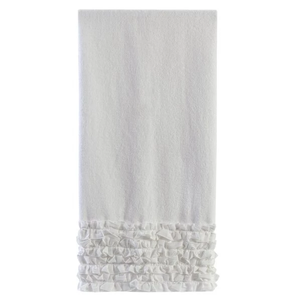 White looks right in almost any setting and the bathroom is no exception. The Ruffles towel add stunning visual beauty to any washroom. Coordinates to other Ruffles towels, accessories, shower curtain, and rug sold else where on this site. This look is timeless for any bathroom. 100% Cotton, machine wash, tumble dry. 25"x50"