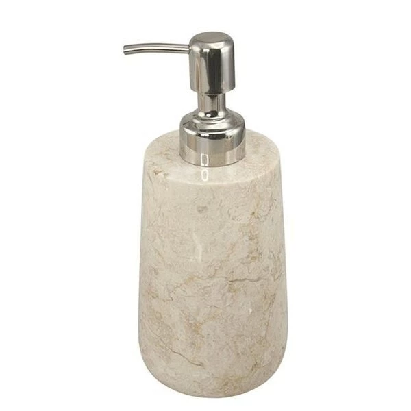 Stylish genuine natural marble is suitable for all styles of bathrooms. This beautiful liquid soap dispenser is sure to impress guests and family members with its winning formula of elegance and convenience, a must have for every bathroom. FeaturesHand craft and carved from genuine natural marbleAny color variation is its own uniquenessStainless steel pump to match sturdy classical marble body Durable, heavy weight natural marble keeps toothbrush holder sturdyEasy to clean, rinse the surface thoroughly after washing with the soapsolution and dry with a soft cloth.; SpecificationsColor: ChampagneMaterial: MarblePrimary Material: StoneWeight: 4 lbs