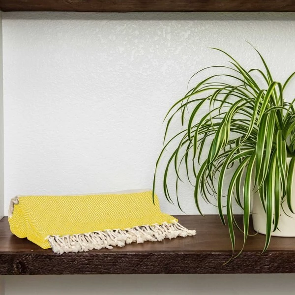 Deerlux 100% Cotton Turkish Bath Towel, 40 x 70 Diamond Peshtemal, Yellow