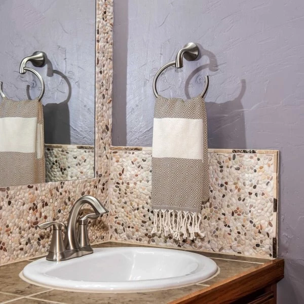 Add a layer of grip and protection to your sink with the Regular Green iDesign Pebblz Kitchen Sink Protector Mat. It's made of rugged PVC with a pebble pattern in natural earth tones. This iDesign sink mat prevents delicate dishes and glassware from damag
