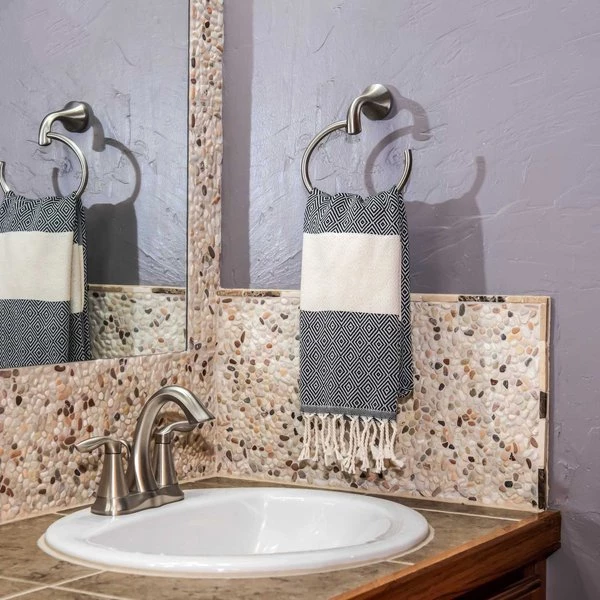Add a layer of grip and protection to your sink with the Regular Green iDesign Pebblz Kitchen Sink Protector Mat. It's made of rugged PVC with a pebble pattern in natural earth tones. This iDesign sink mat prevents delicate dishes and glassware from damag