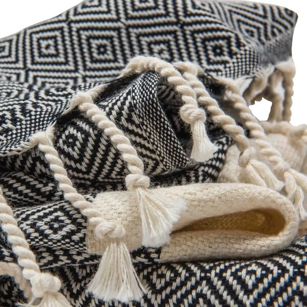 Deerlux 100% Cotton Turkish Hand Towels and Bath Towels, Diamond Peshtemal, Black, PK 2