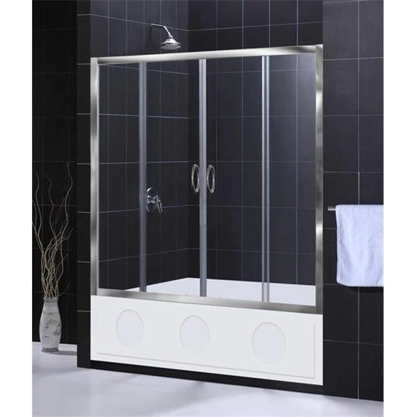 Bath Authority is one of the fastest growing global manufacturers of bathroom products for the residential and commercial markets. Bath Authority provides its clients with innovative bathroom showers steam rooms vanities faucets and specialty products under its Bath Authority and DreamLine brands. Bath Authority's mission is to provide bathroom fixtures and accessories of the highest quality creative design and exceptional value.Two sliding Glass Doors.Tempered 1/4" glass.Anodized aluminum profiles and frames.The width is adjustable between 56" – 60".Size: 60" x 58".Color: Chrome.Material: Glass.