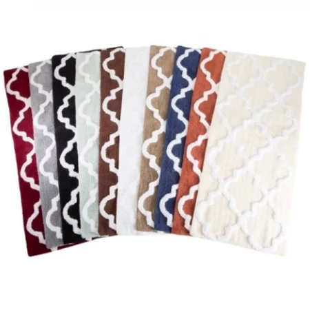 $31.07Original price was: $31.07.$21.75Current price is: $21.75.Bring life to your bathroom with the premium 100 Percent Cotton Trellis Bathroom Mat. The Trellis pattern brings a European regal look right to the bathroom. A transparent anti-skid spray latex backing is added for keeping rugs safely in place. This 100 Percent cotton rug makes a super absorbent choice and is machine washable. Extremely plush with cut loop velour finish, this bath mat feels as luxurious as it looks.