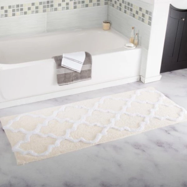 Hastings Home 100 Percent Cotton Trellis Bathroom Mat – 24×60 inches – Bone