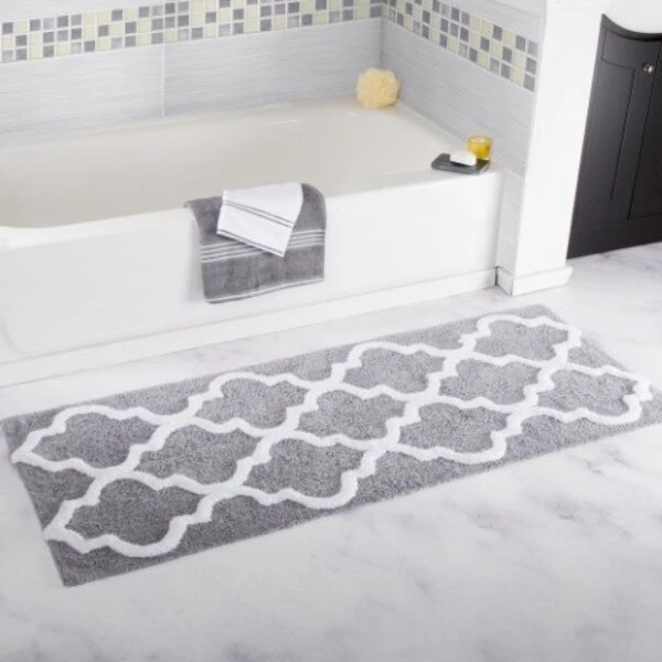 Hastings Home 100 Percent Cotton Trellis Bathroom Mat - 24x60 inches - Silver