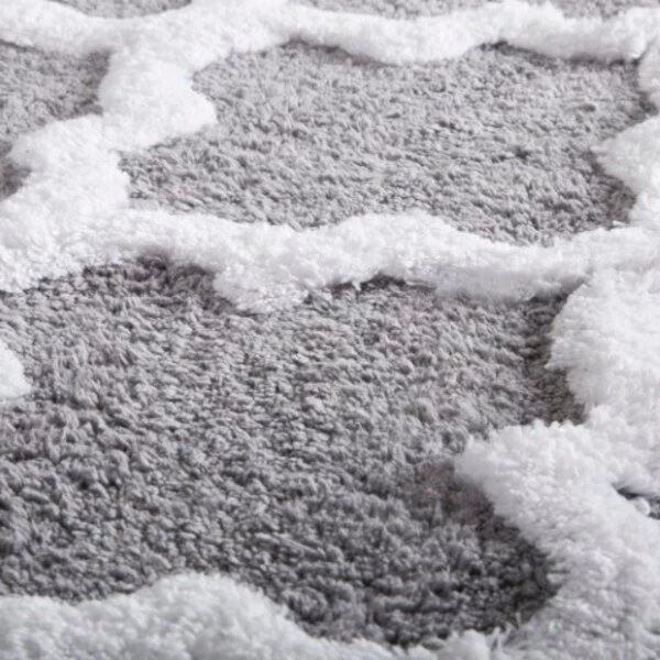 Bring life to your bathroom with the premium 100 Percent Egyptian Cotton Trellis Bathroom Mat. The Trellis pattern brings a European regal look right to the bathroom. A transparent anti-skid spray latex backing is added for keeping rugs safely in place. This 100 Percent cotton rug makes a super absorbent choice and is machine washable. Extremely plush with cut loop velour finish, this bath mat feels as luxurious as it looks.