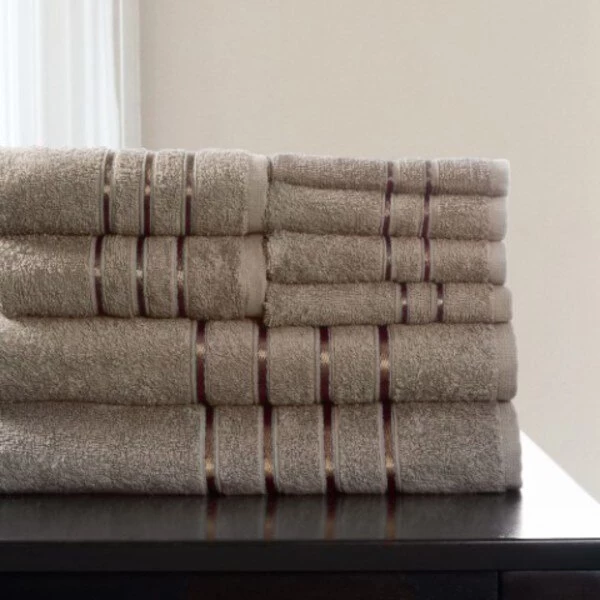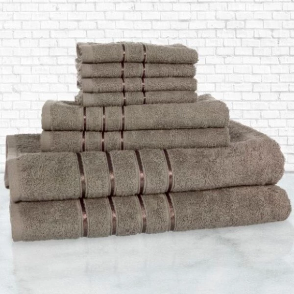 Hastings Home 8 Piece 100 Percent Cotton Plush Bath Towel Set – Taupe