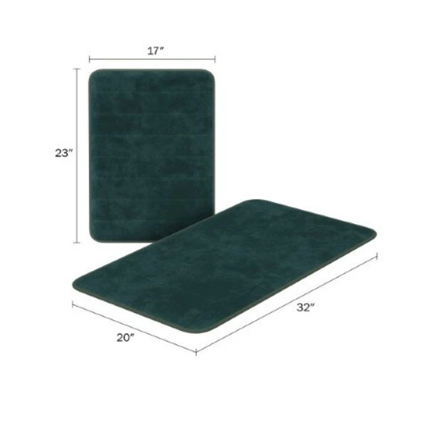 Add comfort and luxury to your bathroom, kitchen or laundry room with the Bathroom Rug Set by Hastings Home. The 1/2-inch thick memory foam provides plenty of soft, cushioned comfort as you step out of your tub or shower. The plush and super soft microfiber topper wicks away moisture and is machine washable for convenient and hassle-free cleaning. The set includes one oversized runner ideal for bathrooms with double vanities, claw foot tubs, or large walk-in showers and one standard size bathmat perfect for pedestal sinks and toilets. They are also great for use in the kitchen or laundry room for comfortable cushioning under your feet. The backside of these rectangular shaped rugs is nonskid, keeping it safely in place as you dry off. The attractive striped pattern is sure to bring a cozy style to any room of your home.