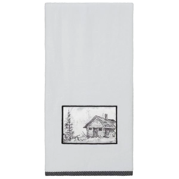Add beautiful artistry to your bathroom for a stunning new look with the Sketches in black & white. Our Hautman Brothers rustic woodland life colledtion reinvents a classic look in a mono chomatic black/white palette for a more sophisticatd theme. 100% cotton towel with embellished satin print motifs Towels have different applique on each towel. Coordinates to other Sketches accessories, shower curtain ,rug and towels sold else where on this site to complete this innovative and upscale bath program. Machine wash, tumble dry. 25" x 50".