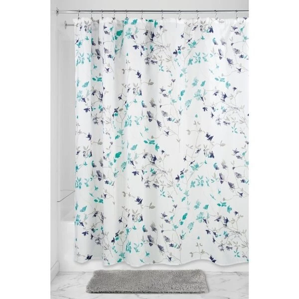 iDesign Twiggy Floral 72 in. H X 72 in. W Teal/Navy Floral Shower Curtain Polyester