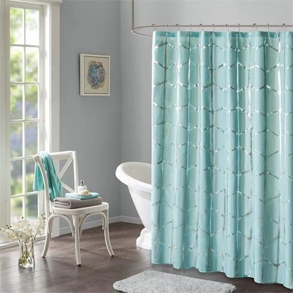 Intelligent Design ID70-1291 72 x 72 in. Raina Printed Metallic Shower Curtain – Aqua