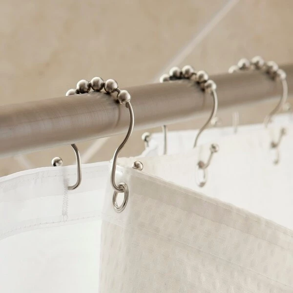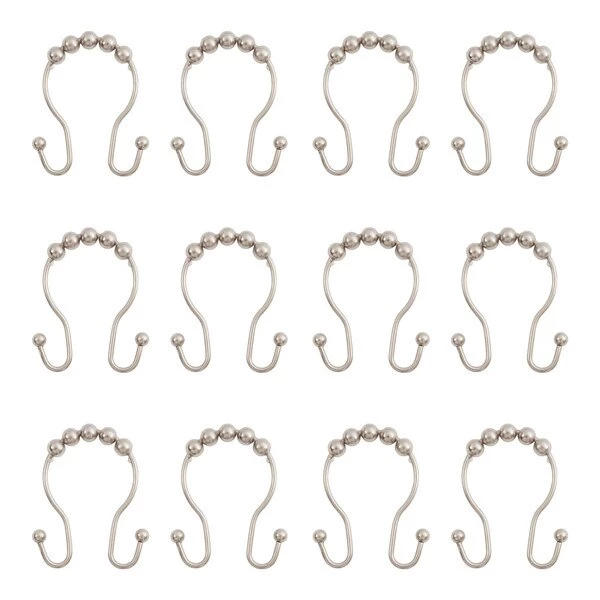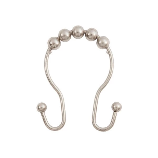 This set of twelve Kenney Beaded Roller Shower Curtain Double Hooks are designed to coordinate with many bathroom hardware finishes. With an additional hook on the back, use these to hang both a shower liner and a shower curtain separately, making it easy to remove or replace either. The beads help the hooks to glide effortlessly over your shower rod. Each package includes 12 double hooks, fitting all standard shower liners and rods. <ul><li>Set of 12 Kenney Beaded Roller Shower Curtain Double Hooks</li><li>Designed to complement many bathroom décors</li><li>Double hooks let you to hang shower curtains and liners separately, for easy removal</li><li>Roller beads help the hooks to glide smoothly over the shower rod</li><li>Fits standard size shower rods and liners</li></ul>