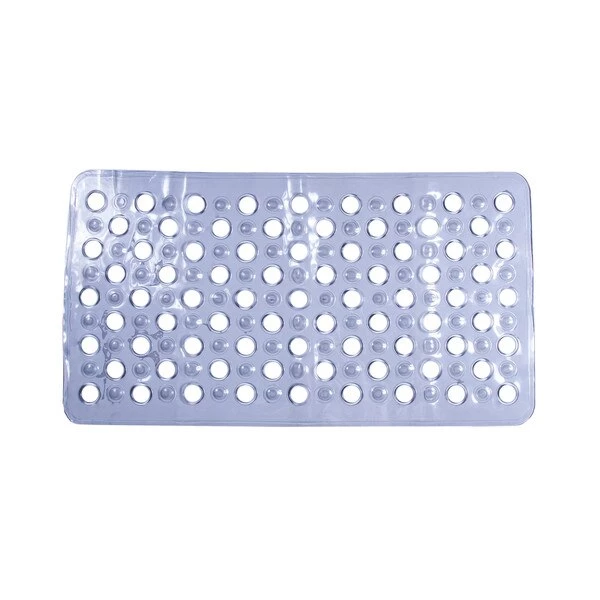 Bathtub Shower Mat <p>Drive Medical's bath mat holds securely to your tub with multiple suction cups, allowing for a slip-free bathing experience. The bath mat provides a large and secure surface area in the tub. Its soft rubber mat is as easy to clean and can be rolled up for storage. This product also features a contour cut out specifically designed to fit around your drain.</p><strong>Features and Benefits</strong><ul><li>Mat is held securely by multiple suction cups</li><li>Extra-long bath mat adds safety and security by providing a large, slip-proof, surface in the bath</li><li>Soft rubber mat is easy to clean and roll up for storage</li><li>Mat has a contour-cut design to fit around drain</li><li>Mold resistant latex-free rubber</li><li><strong>Product Specifications</strong><ul><li>Actual Product Weight: 2.4 lbs</li><li>Overall Product Height: 0.2"</li><li>Overall Product Length: 35.5"</li><li>Overall Product Width: 15.75"</li><li>Primary Product Color: White</li><li>Primary Product Material: Rubber</li><li>Warranty: 90 Day Limited</li><li>Model # 12950 </li><li> No Assembly Required </li></ul></li></ul>