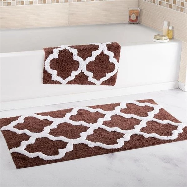 Lavish Homes Lavish Home 67-0027-C 100 Percent Cotton Trellis Bathroom Mat Set; Chocolate – 2 Piece