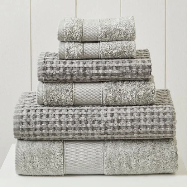 Modern Threads 6-Piece Yarn Dyed Cobblestone Jacquard Towel Set Silver