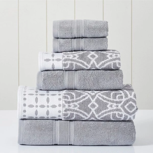 Modern Threads 6-Piece Yarn Dyed Jacquard/Solid towel set Monroe Stone