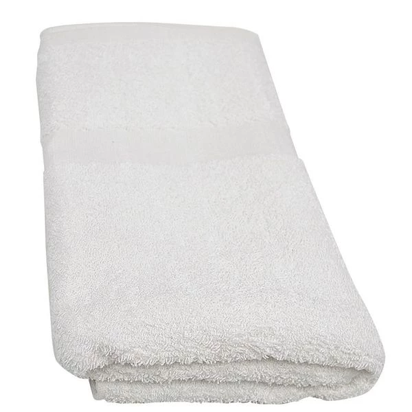 Bath Towel, Width 24 In., Length 50 In., Weight 10 lb. per Dozen, Cam Border, 100 Percent Cotton Material, Hemmed Edges, Color White
