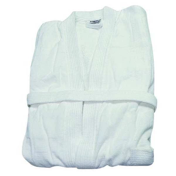 Bathrobe, 100 Percent Cotton Terry, Length 48 in, Size Fits All, Color White, Package Quantity 12