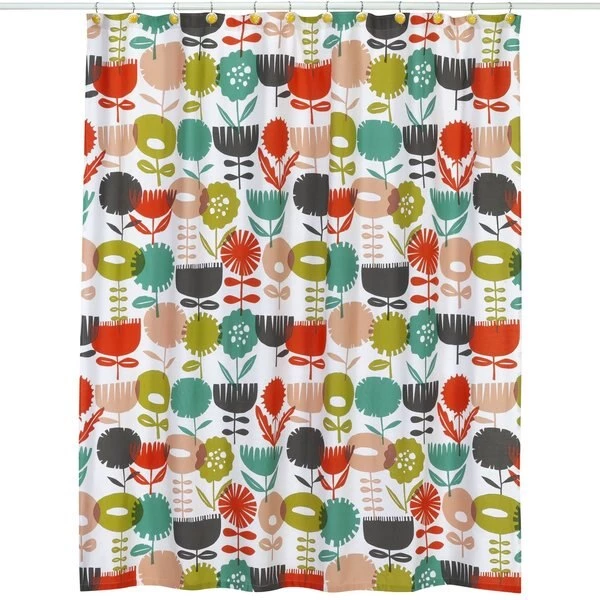 Skinny laMinx designer Heather Moore, loves to create her designs by cutting shapes from paper, which is how the 'Blooms' pattern came to life. The fresh simplicity of this Scandi-inspired design in the distinctive Skinny laMinx color palette is sure to give bathrooms a real energy boost! The stylized graphic floral in a bright and trendy color palette is applied to a hefty 100% cotton duck canvas. Coordinates to other Blooms accessories and rug curtain sold else where on this site. Machine wash tumble dry. 72" x 72"