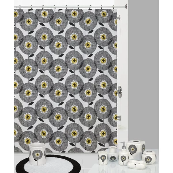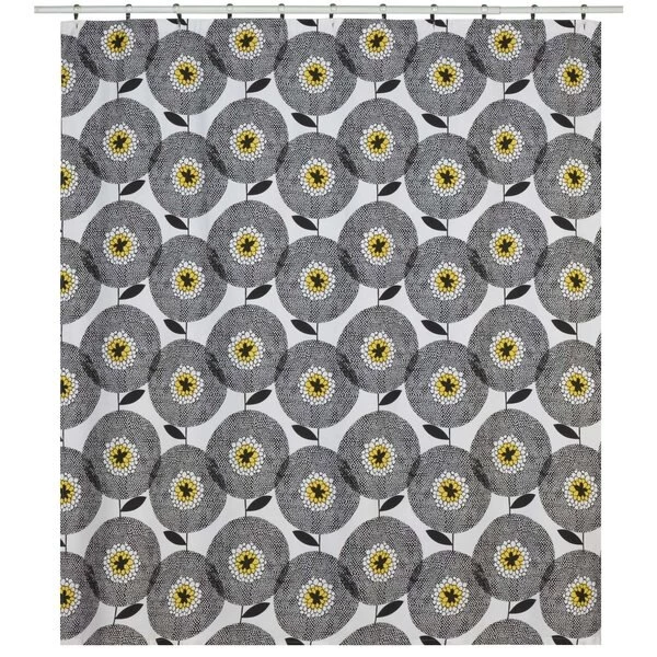 The fresh simplicity of this Skinny laMinx, Scandi-inspired large-scale graphic pop flower design in a crisp black and white color combo, is high impact when printed on a 100% cotton duck shower curtain. Coordinates to other Flower Fields accessories sold else where on this site. Machine wash, tumble dry. Shower curtain liner recommended. Flower Fields is sure to give bathrooms a real energy boost. 72" x 72"