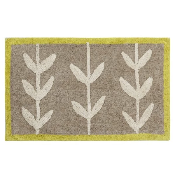 Our new introduction "Vines" is one of the most enduring favorites from the joyfully simple Scandi-inspired design collections created by Cape Town brand, Skinny laMinx. The 100% cotton rug is a neutral bi-color handcrafted rug with contrasting citrus green accent border. Machine wash, tumble dry. Coordinates to other Vines shower curtain and accessories that are sold else where on this site for a very upbeat lifestyle look for the bath. 21"x34"