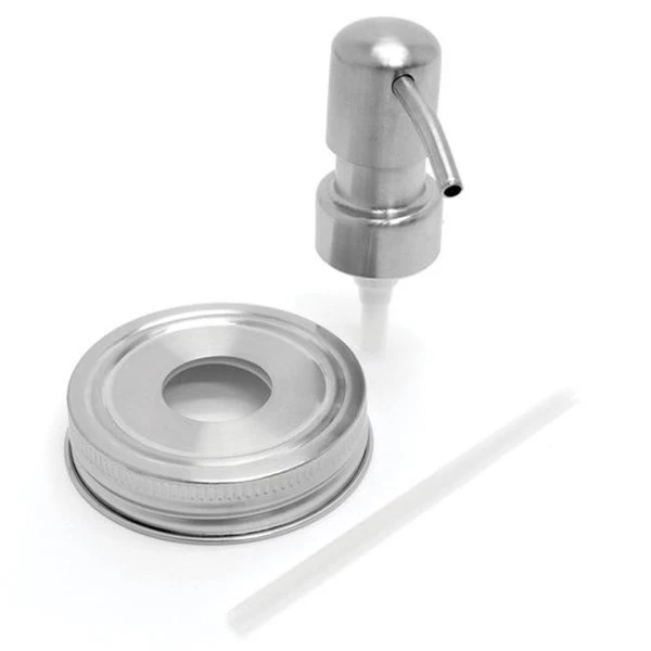Did you know that there are millions of Mason jars are currently in circulation in North America Why not find a second use for all those jars! This Soap Pump for Mason Jars from Starfrit is designed to screw onto a regular Mason jar. To use. unscrew the white screw from the pump. fasten pump to the collar with the white screw. The pump is even dishwasher safe. FeaturesFits on regular-mouth Mason jars to transform jar into soap pumpDurable. stainless steel construction holds up useWorks with all types of liquid soaps. shampoo. conditioner. and hand sanitizersDishwasher safeSpecificationsColor: GrayDimension: 2.38"H x 2.42"W x 2.42"LWeight: 0.39 lbs
