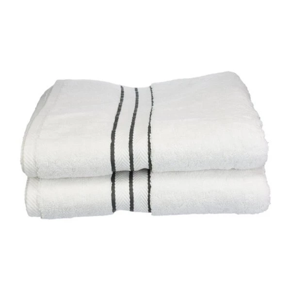 Superior 900GSM-H BTOWEL CL 900 Gsm Egyptian Cotton Bath Towel Set – White With Charcoal Border; 2 Pieces