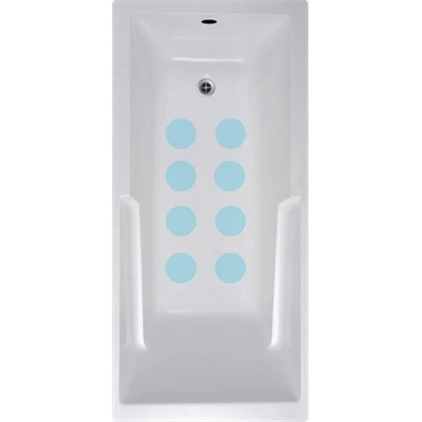 4" x 4" Non abrasive. anti bacterial. anti fungal. anti mold 8 piece peel and stick No Slip circles for shower/bathtub.Patented Peel and Stick Anti-Slip Material.Protects against slipping on a smooth and wet tub surface.No Slip Mat can be digitally printed for decorative applications.Non-Abrasive.Anti-Bacterial.Anti-Fungal.No Mold.Conformable. Non-Residual Removable Adhesive (No Mess).Same material as used by top competitive surfers around the world to provide grip under extreme competitive conditions.Color: Blue.Dimensions: 4" L x 0.0313" H x 4" W.