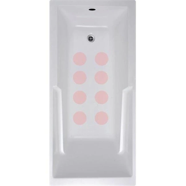 4" x 4" Non abrasive. anti bacterial. anti fungal. anti mold 8 piece peel and stick No Slip circles for shower/bathtub.Patented Peel and Stick Anti-Slip Material.Protects against slipping on a smooth and wet tub surface.No Slip Mat can be digitally printed for decorative applications.Non-Abrasive.Anti-Bacterial.Anti-Fungal.No Mold.Conformable. Non-Residual Removable Adhesive (No Mess).Same material as used by top competitive surfers around the world to provide grip under extreme competitive conditions.Color: Pink.Dimensions: 4" L x 0.0313" H x 4" W.