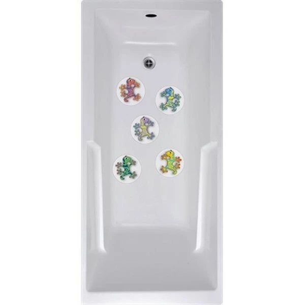 5" x 5" Non abrasive. anti bacterial. anti fungal. anti mold 5 piece peel and stick No Slip circles for shower/bathtub.Patented Peel and Stick Anti-Slip Material.Protects against slipping on a smooth and wet tub surface.No Slip Mat can be digitally printed for decorative applications.Non-Abrasive.Anti-Bacterial.Anti-Fungal.No Mold.Conformable. Non-Residual Removable Adhesive (No Mess).Same material as used by top competitive surfers around the world to provide grip under extreme competitive conditions.Color: Geckos.Dimensions: 5" L x 0.0313" H x 5" W.